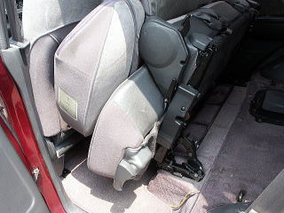 さてシートをはずそうとして、前のねじはすぐ分かるのですが、どこをどう見ても後ろのねじが分かりません。すぐにギブアップして行きつけの車屋に行くとさすがに慣れています。セカンドシートを折りたたむとシートを固定するねじが出てきました。