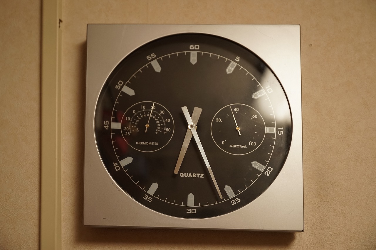 (上の時計は、軸の長さについてあまり考えていないときに修理して、ムーブをだめにして、失敗してはやり直したおかげで、針がかなりボコボコに傷んでしまっています。湿度計などが付属していて、ちょっとおしゃれなので、いまだに使っていますが。)