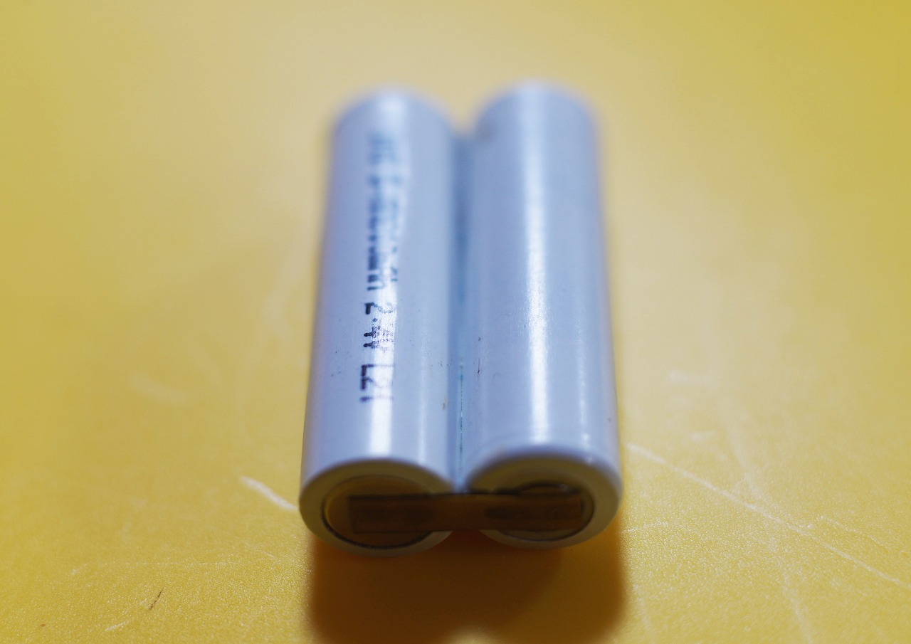 これには、単3型の充電池2本が直列に繋がっているのですが、2本を写真のように繋ぐのに、どうしたものかと考えていました。