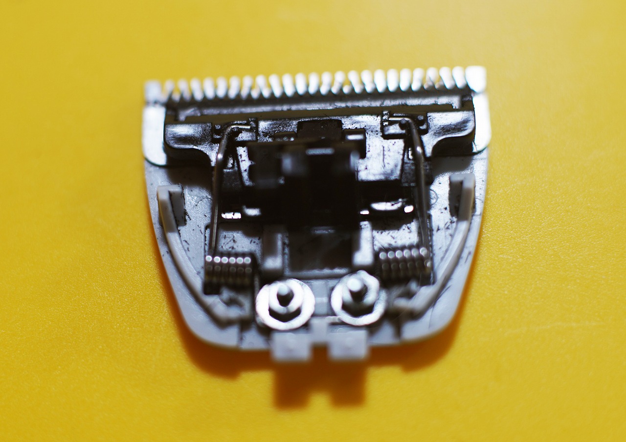 もう15年近く使っているテスコムのバリカンTC402ですが、買って2年ぐらいですぐに刃の部分のバネを抑えるプラスチックが折れて使えなくなってしまいました。これは我が家では2代目のバリカンです。