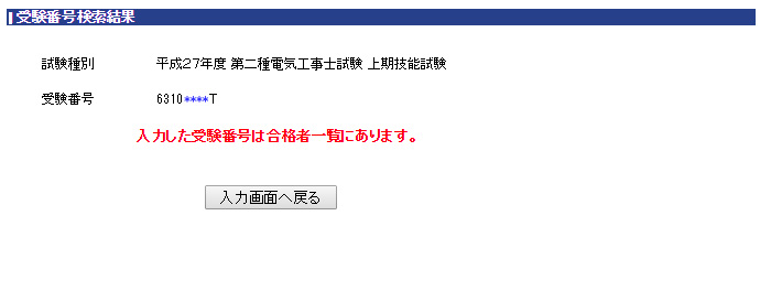 もし、「入力した受験番号は合格者一覧にありません。」と出てきてしまったなら、「ざーんねーんでーした-まーた来ーてねー」ということになります。